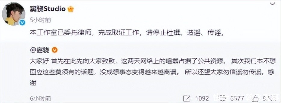 婚变消息初起时,窦骁方面迅速做出反应,工作室第一时间发布声明。