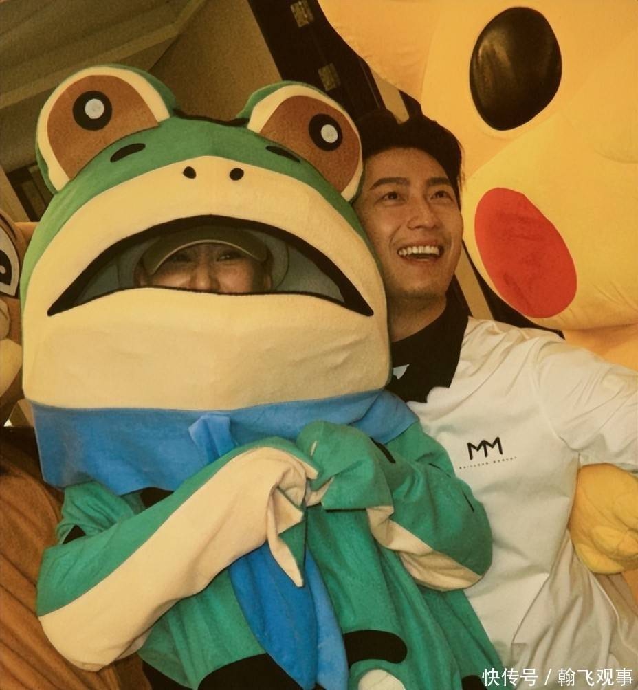 其中那只绿色青蛙玩偶格外吸睛——原来是由何超莲亲自扮演。